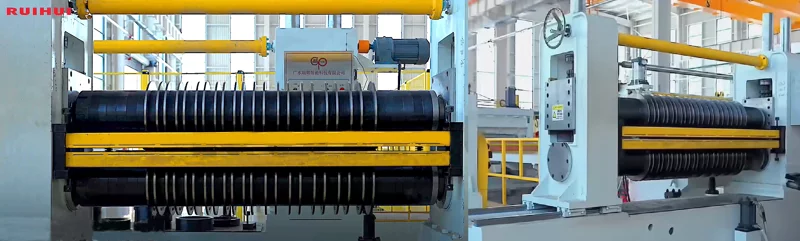 (Here is the circular shear; the spacing between the circular blades can be adjusted.)