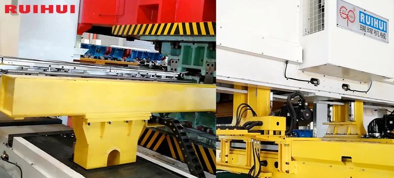 (This is the box-type structure. The main operating units at the front and rear are installed on different horizontal planes, making the structure more robust and more resistant to vibrations generated by stamping.)