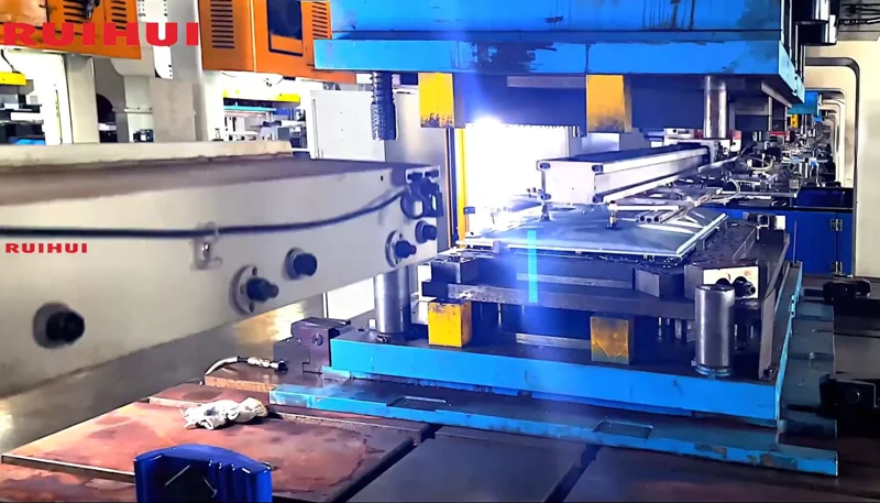 This production line usually consists of 2-6 punch presses. Multi-station dies are typically used on the presses to achieve continuous punching, forming, and trimming processes.