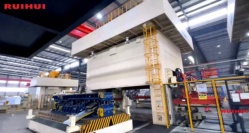 The stamping machine supports quick die changes, allowing molds to be replaced in a short time and significantly reducing production setup time. Combined with the flexible control of the manipulators and straightener feeder, the entire line can quickly adapt to different sheet materials, thicknesses, and part sizes, enabling high flexibility and continuous production of multi-specification parts.