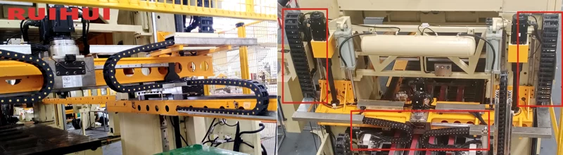 The 3-axis transfer system is the most commonly used in automated stamping production. It typically uses two horizontal bars to complete forward/backward (feeding), rise/down (releasing), and left/right (clamping) movements.