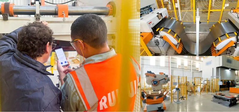 This visit focused on one of RUIHUI’s customized split-type coil feed lines integrated with a progressive die stamping system for the production of home appliance parts. The engineering team carried out a full inspection, equipment optimization, and system testing to ensure long-term reliability and performance.
